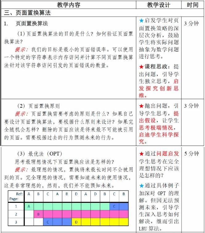 3.思政目标:成为国产操作系统内存技术人才;通过分析设计和优化页面置换算法,启发探究创新思维。